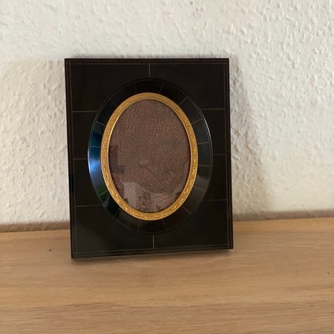 Broderet hvid babykrave i gammel træramme med glas. 25.5x19 cm.