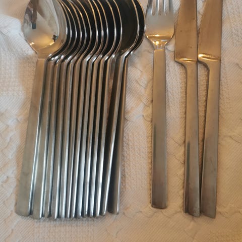 4 teskeer, 6 spiseskeer, 4 gafler og 4 knive