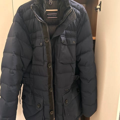 Tommy Hilfiger. Fin varm vinterjakke i meget god stand. Mange lommer, inkl. indvendig lomme. Aftagelig hætte.