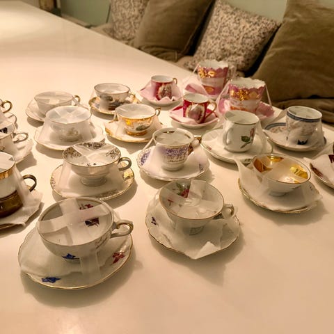 Samling af 18 forskellige flotte mocca kopper med underkop. En kop uden. Pr sæt 25kr
