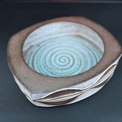 Beate Andersen Håndlavet Keramik Skål Beige med Brun Kant