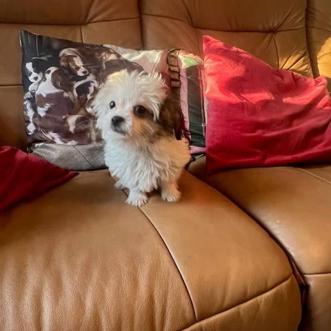 Bamserne vokser op centralt i vores stue, sammen med barn på 4 år + gæstebørn i alle aldre, voksne og andre hunde.