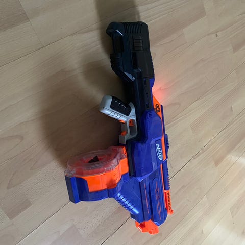 Den kan også sagtens bruges. For at stoppe ladningen skal magasinet bare tages ud.