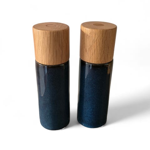 Bitz grønt salt- og peberkværnsæt i glaseret stentøj sælges.