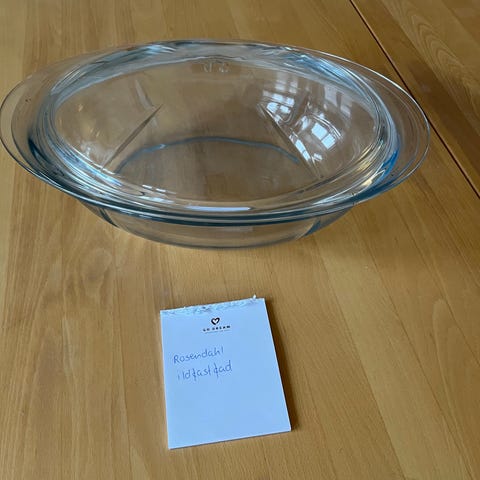 Rosendahl ovnfast fad i klart glas. Fadet er egnet til brug i ovn og kan anvendes til tilberedning og servering af mad.