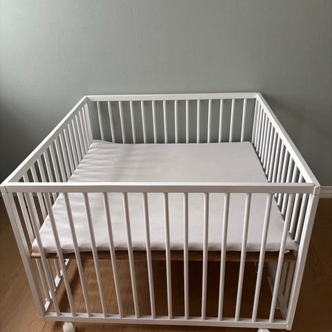Fin kravlegård fra BabyDan med hjul. Madras og kravlegårdstæppe medfølger.
