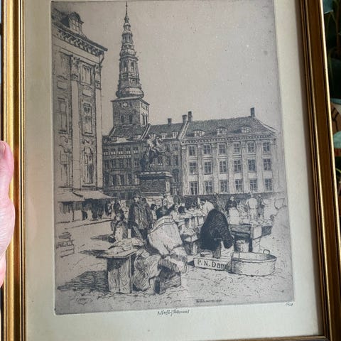 Nikolaj Hammer tryk, 1930. Smukt udført med flotte detaljer. Forestiller Rosenborg. I original ramme.