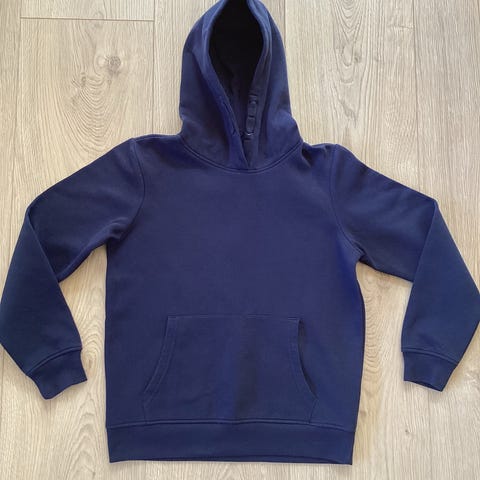 Fin blå hættetrøje / sweatshirt i str. 160. Materiale: 80% cotton. 20% polyester. Måler rundt under ærmerne 98 cm. Længde 58 cm. Se alle fotos. Må afhentes i Viborg eller sendes forsikret med DAO + porto. Se gerne mine andre annoncer, mere kan købes med. Har bl.a. en del drenge tøj / teenager tøj.