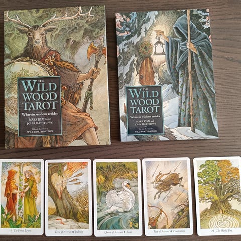 78 kort på 7,1*11,8 cm. Lille guidebog på 80 sider på engelsk.