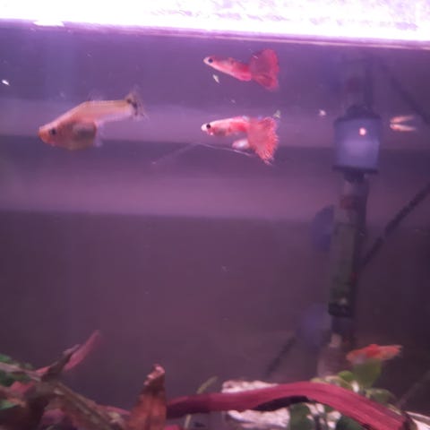 Jeg har sorte men sølv mønstre guppy til salg. De har allerede fået farver, men hanner bliver en halv cm større, hunnerne bliver 1 cm større.