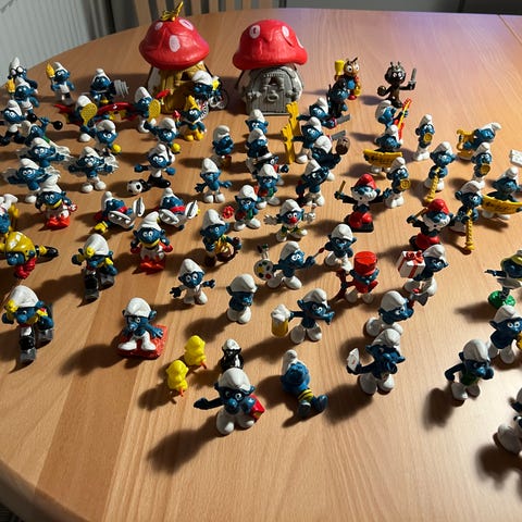 11 smølfer + hus sælges for 150 kr. Afhentes i Ris ved Ejer Bavnehøj.