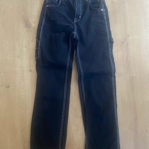 Bershka Denim Mom Jeans i sort farve, størrelse XS. Fremstillet i denim materiale. Designet til kvinder.