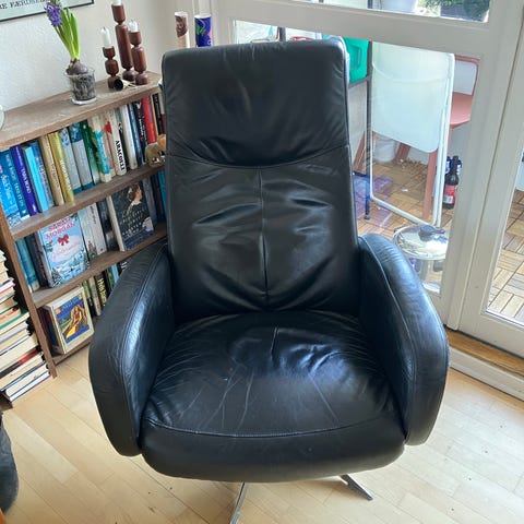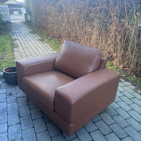 Pæn, velholdt lænestol og skammel fra Hjort Knudsen. Nypris 5000 kr. Kommer fra et røgfrit hjem.