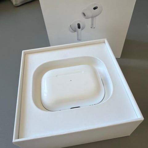 Apple AirPods Pro (2nd generation) with MagSafe Case (USB‑C). Apple AirPods Pro headset i hvid farve. Trådløse øretelefoner med støjreduktion og opladningsetui. Designet til brug med Apple-enheder.