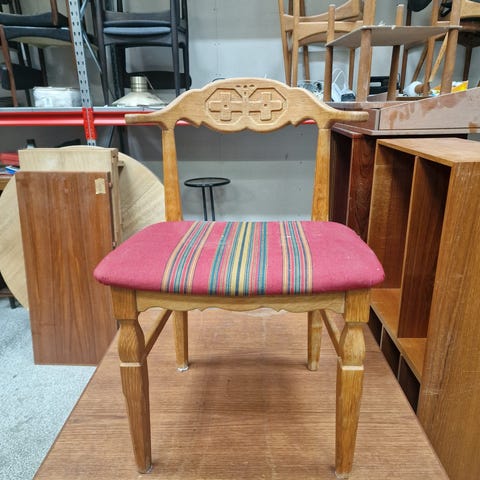 1 stk Retro spisebordsstol I massiv patineret egetræ fra 1960-1970erne