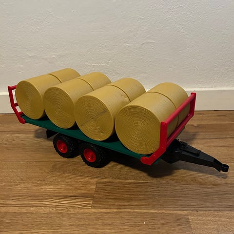 Ballepræsser velholdt, incl. 2 halmballer. Den er kun leget med indenfor. Fra røg-/dyrefrit hjem.
