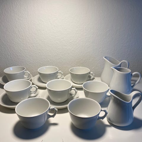 PILLIVUYT Kaffe kopper, helt nye de har aldrig været taget i brug og fylder bare i skabet. Der er 8 kopper og 6 underkopper.