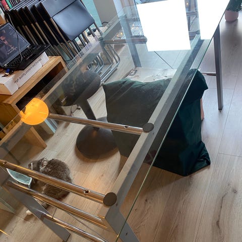 lille fint glasbrod, har været brug som skrivebord men passe også som en spisebord for 6 pers.