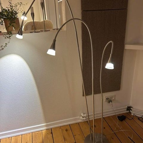 Gulvlampe med papirskærm 20x33 cm og fatninger til 3 stk. pærer. Sort ledning på 180 cm med tænd/sluk knap. Sender ikke. Prisen er fast