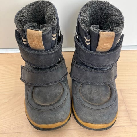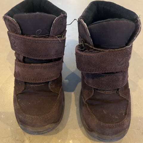 ECCO børn støvler i størrelse 24. Støvlerne er sorte med grønne detaljer og har velcrolukning for nem tilpasning. Materialet kombinerer tekstil og syntetiske elementer, velegnet til børn.