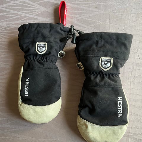 Et par lækre varme hestra luffer til børn str. 6. De er næsten ikke brugt. Der er en udtageligt uld for/luffe.