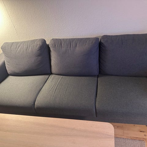 Denne beige 3 personers sofa med lige design.