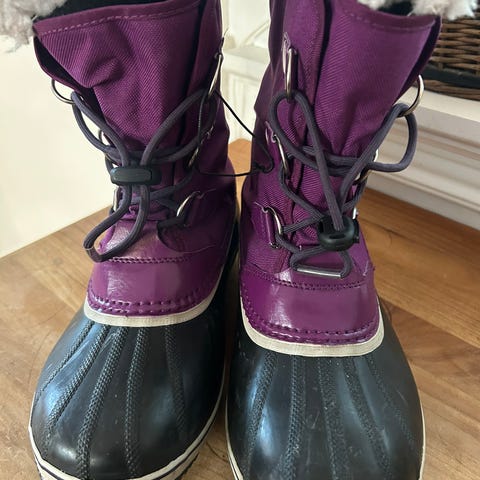 Jeg sælger mine nye Sorel Caribou støvler i størrelse 39.5. De er brugt en gang, men er desværre for store, derfor får jeg dem ikke brugt. De er i et limited edition retro design med mørkebrun læder der har et houndstooth design og var købt i USA. Jeg kan ikke se at de sælges i Danmark, så der vil ikke være nogle der har de samme. Der er ikke nogle synlige brugsspor da jeg som sagt kun har haft dem på udenfor en gang. Afhentes i Valby.