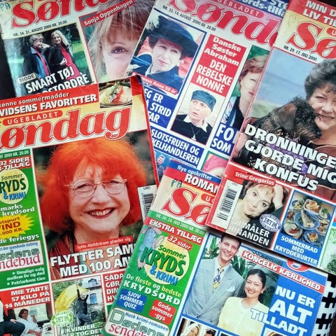 Gamle ugeblade med bl.a. Grethe Sønck, Jytte Abildstrøm, Frits Helmuth, Prins Joachim og Alexandra, og Sonja Oppenhagen...