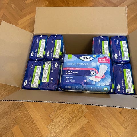 TENA nattebleer til voksne, seks uåbnede pakker med 6 inkontinens bleer i hver pakke.