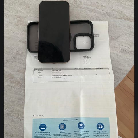 iPhone 16 pro max 256 GB i natural titanium farve. Den er fra 11.11.2024 og således reklamtionsret frem til 11.11.2026. Den er som ny. Har 3 små ridser på få mm på skærmen som ikke kan ses normalt eller på et billede, men kun kan ses når telefonen holdes i en bestem vinkel i lyset. Ingen skader af bagskærmen eller hjørnerne. Original box med ubrugt ledning samt kvittering medfølger. Den har 98% batteri kapacitet tilbage.