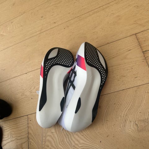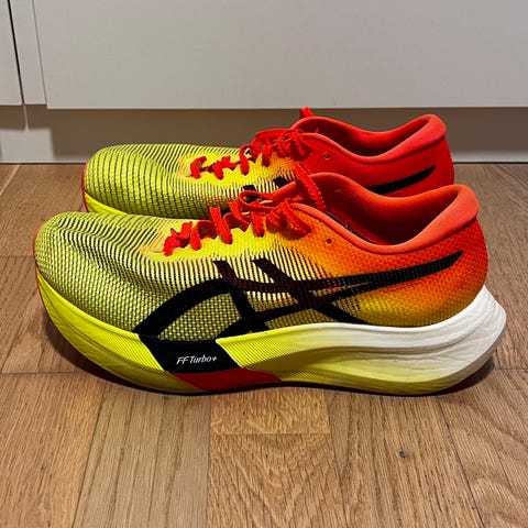 Asics løbesko i størrelse 44 med gul og blå farve. Skoene er designet til løb og har en let og åndbar overdel med god stødabsorbering i mellemsålen. Ydersålen har slidstærkt materiale med godt greb.