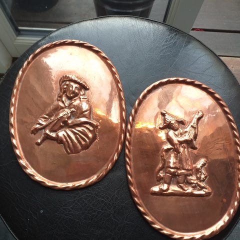4 Fine håndlavet metal/kobber platter med egyptisk motiv. Sælges samlet for 299kr