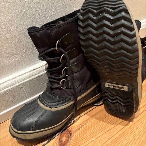 Helt nye og ubrugte varme vinterstøvler til herre. Størrelse 8 1/2 (42 3/4). Sorte. Skridsikre såler.