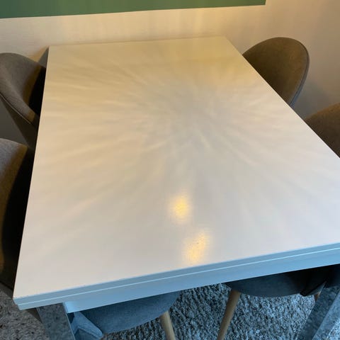 Justerbart spisebord/skrivebord med smart løsning. Ekstra bordplade opbevares inde i selve bordet. Super nemt at slå ud og ind. Ekstremt slidstærkt.