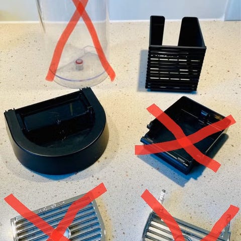 Mælkeskummer, vandtank, kapselopsamler med metalfod og drypbakke med metalrist fra original Nespresso Citiz&Milk maskine.