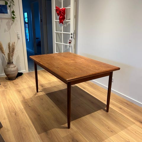 Brugt solidt teak træs bord fra Vejle stole og møbel fabrik, med hollandsk udtræk