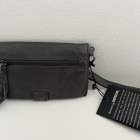 Stilren og praktisk taske/pung fra Depeche i blødt sort læder. Smart indretning med flere lynlåsrum, så den fungerer perfekt som både pung og lille taske. Kan bæres crossbody eller bruges som clutch, da remmen er aftagelig.