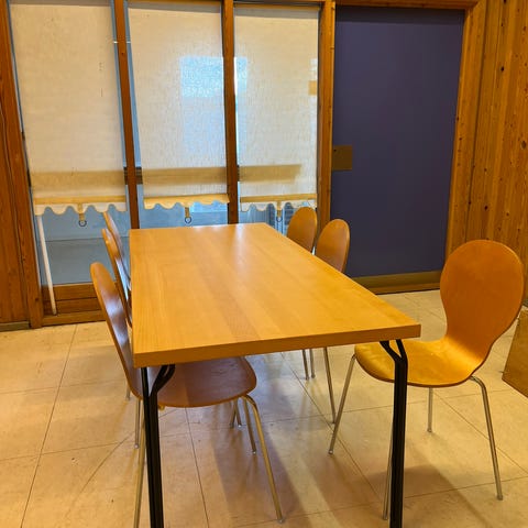 Dansk lakeret bøg spisebord og stole