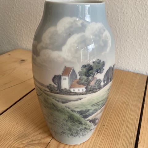 Royal Copenhagen vase dekoreret m landligt motiv uden fejl eller skrammer