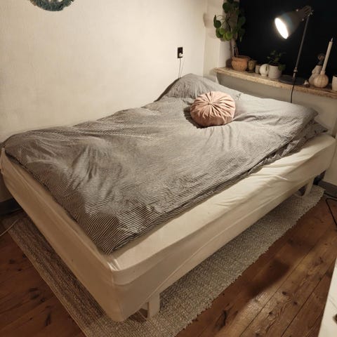 Sengen er i god stand. Madras og topmadras følger med, der er plads til en del opbevaring under. Skriv for flere billeder eller ydeligere info.