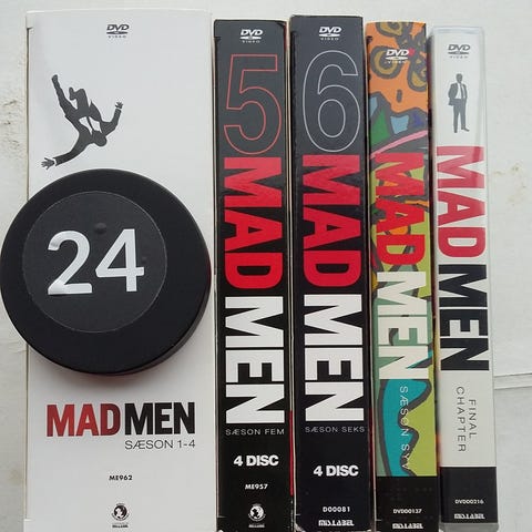 Mad Men DVD Sæson 1-7 Limited Edition + Final Chapter. Indeholder alle sæsoner af serien. Sættet inkluderer flere DVD-æsker med samlet spilletid på ca. 334 minutter. Serien er indspillet i 16:9 billedformat og har lyd i Dolby Digital. Serien er tilgængelig på dansk og anbefales til personer over 15 år.