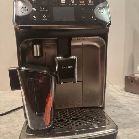 Philips Serie 2200 espressomaskine med integreret mælkeskummer. Maskinen er sort og har et digitalt display med knapper til forskellige kaffeindstillinger. Den har en aftagelig vandtank og drypbakke for nem rengøring. Velegnet til tilberedning af espresso og mælkebaserede kaffedrikke. Rigtig fin stand, og sælges udelukkende grundet opgradering til anden kaffemaskine. Er netop rengjort fuldstændig og afkalket, så den er helt klar til brug. Beholder tømmes selvfølgelig for bønner inden afhentning. Nypris 3200,- (kvittering haves)