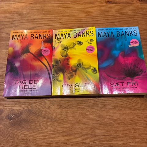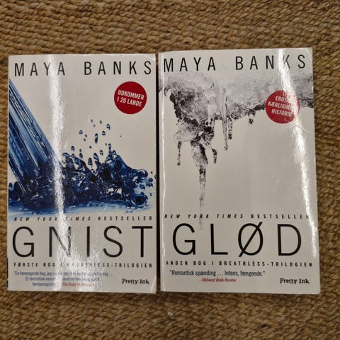 Maya Banks Breathless-trilogien består af tre bøger: Gnist, Glød og Ild.
