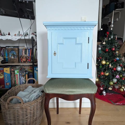 Sødt lille råhvidt skab som enten kan hænges op eller stå på gulvet. Perfekt til sommerhuset