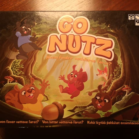 Go NUTZ brætspil med spilleplade, spillebrikker og kort. Spillet indeholder farverige brikker og kort med forskellige motiver. Egnet til flere spillere og familiebrug. Mangler regelsæt.