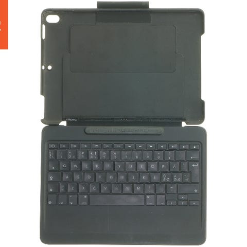 Logitech Slim Combo Touch etuiet til iPad Air 10.2. Det har et full-size bagoplyst tastatur med en touchpad, der har iOS genveje for en mere brugevenlig oplevelse. Tastaturforbindelsen er let og ubesværet. Slip for parring og opladning - forbind blot tastaturet med din iPad Pro med Smart Connector og tast løs. Tastaturet trækker strøm direkte fra iPad Pro, så der ikke er brug for et batteri. På den måde holdes designet lettere.