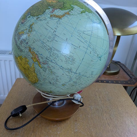 Flot ældre globus med lys og sort træ fod D: 33 cm 1983
