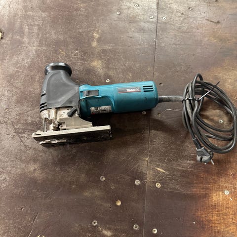 Makita 1806B el-høvl med tilhørende kuffert. El-høvlen er designet til træbearbejdning og leveres med håndtag og ledning.