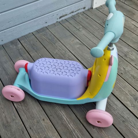 Gåcykel/scooter/ride on udformet som en lille sød ko. Scooteren er af træ med aftageligt og vaskbart betræk. Vil mene den er bedst til indendørs brug. Mål: 29,5 x 48 x 39 cm. Sædet er i 23 cm højde. Alder: fra 1 år