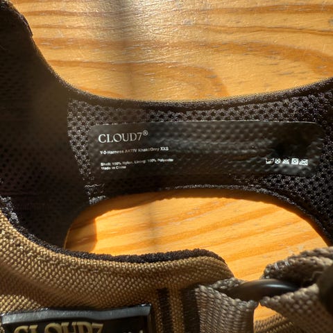Næsten nyt Cloud7 Aktiv udstyr, både sele og snor. Jeg har købt det til min Golden, men selen i halsen er for lille til hans manke, så vi bruger den ikke. Snoren købte jeg så min mor kunne bruge kroppen, hvis han trak - hun nægter at bruge den.. så den hænger også bare til pynt?!